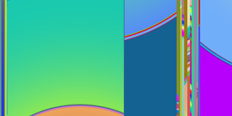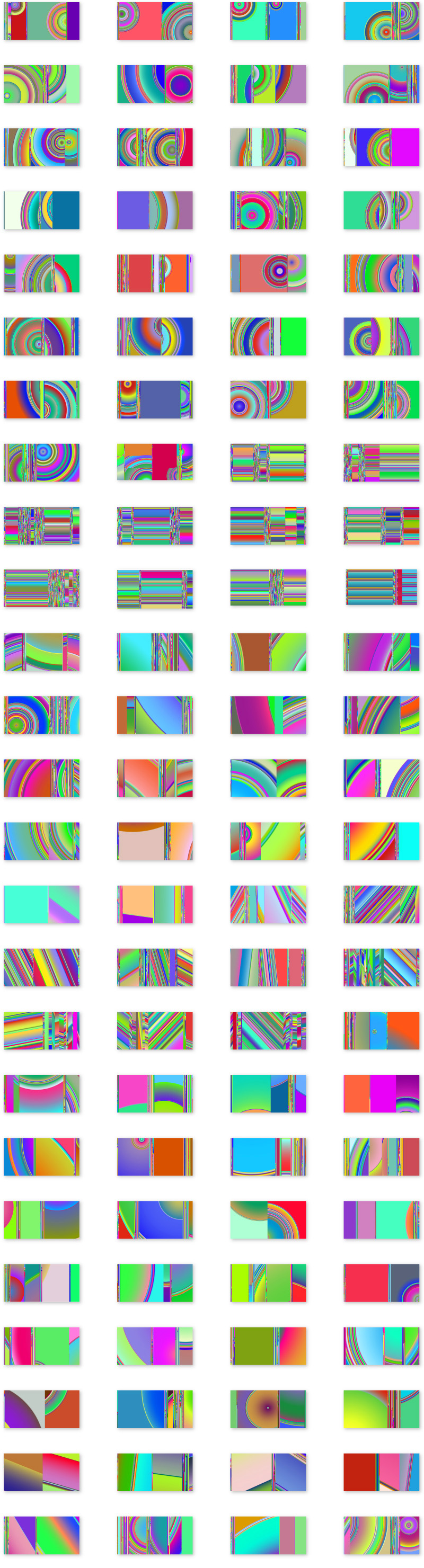 アリかナシかでいったら十中八九ナシに分類するであろう色彩達。明らかに気持ちの悪い色彩と構成だけれども、これだけの量を並べて眺めていると、たまに、無くは無いかもしれないと思える色彩や形を見つけることがある。気持ち悪いような気がするが、もしかしたら美しいかもしれない、という、判断できないギリギリの線上にのっている図形に心惹かれるときがある。