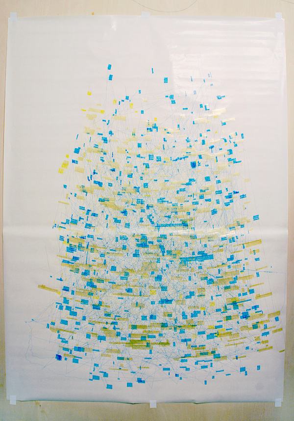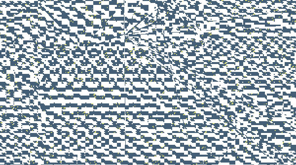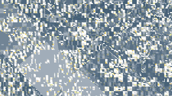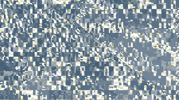 描画される四角が細かくなるように調整して描画開始。結果的には粗密があまりなく、若干、退屈な絵になった。早くも単なるランダムなだけのテクスチャが退屈になってきた。