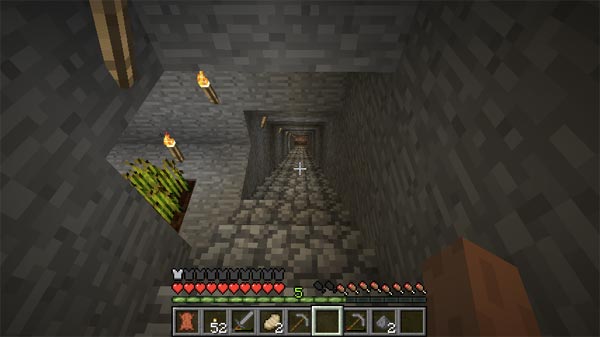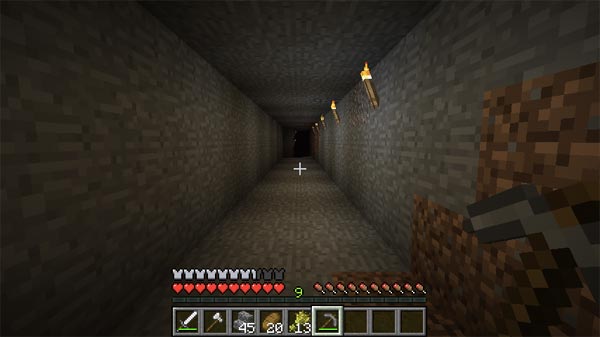 効率的に土や石を掘れる強いツルハシが欲しくなり、鉄鉱石やダイアモンドを求めて地中を掘り進める。