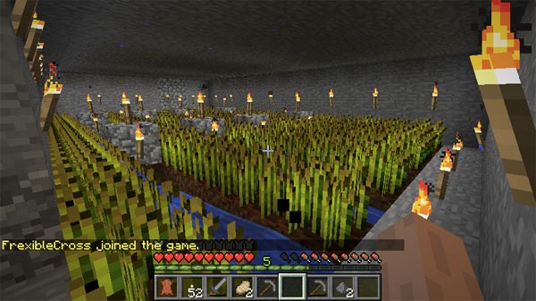 地下にも秘密小麦農場を作った。電照菊のようにタイマツで昼夜問わず光を与え、麦を育てる。