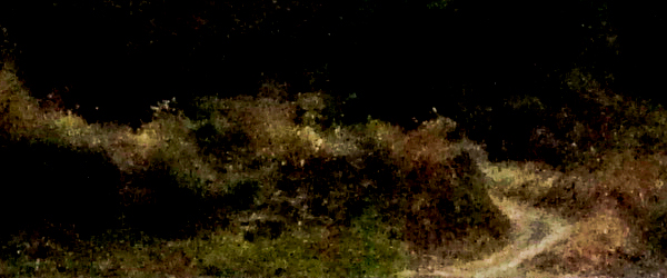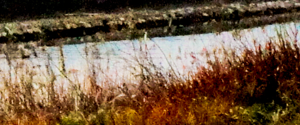 犬の散歩がてら撮った写真は、カメラのISO感度が上がりすぎたままになってしまっていたせいか、ザラザラしつつ滲んだような感じになって、アンドリュー・ワイエスの絵画っぽくなった。