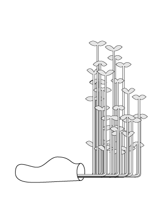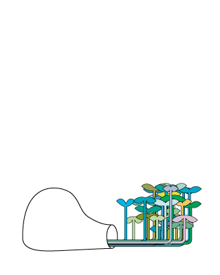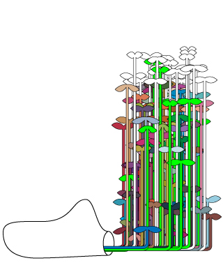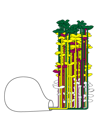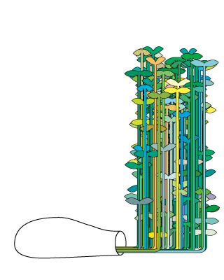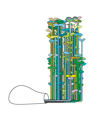 カイワレ大根的なものを大量に描くツールを作った。昼休みの時間に、何となくこのイメージが浮かんで、1時間くらいでこのカイワレツールが出来るだろうと踏んでいたが、久々にプログラムをいじったので3時間近くかかった。しかもツボは手動で描画している…。
