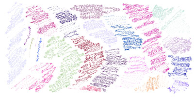 最近、タイポグラフィ関連のグラフィックアートで、コラージュとか立体化とか自然現象とかイラストレーションとか、様々な方法で表現されたアルファベットの作品をよく見かける。プレゼンテーションは基本的にはどれもAからZまで一枚絵として独立して見せていくものが多い。どれもおもしろいのだけれど、文字それ自体で画面が完成してしまうので、他の要素と組み合わせて使う用途、つまりレイアウトされることはあまり想定されていないように見える。