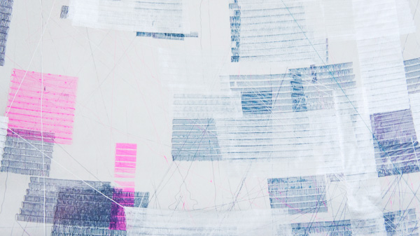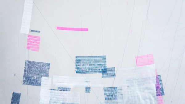描画される四角が細かくなるように調整して描画開始。結果的には粗密があまりなく、若干、退屈な絵になった。早くも単なるランダムなだけのテクスチャが退屈になってきた。