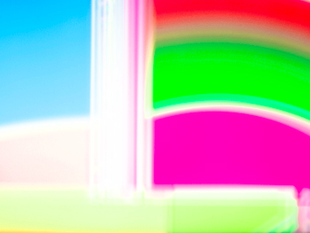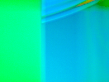 以前、作成した気味の悪い色面をカメラで撮影し、画像の再構成をこころみた。シャッタースピードを遅めにして、ブレさせながら撮影することで、色面をカメラのCCDによって混ぜ合わせていく。カメラの動かし方によって、混ざり方が変わっていく。カメラによって、固定されたあらゆる色や形を、流動的なものとして再構成できるというのは面白いと思う。