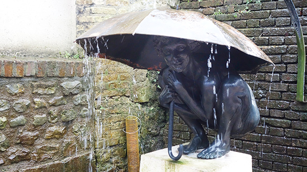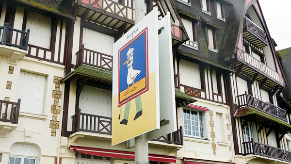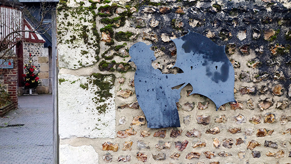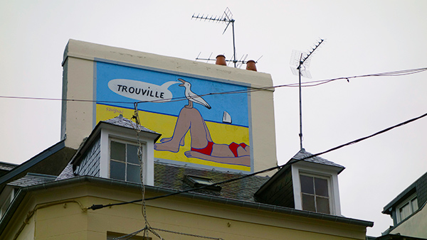 玄関の横のメイン壁面には、例の「モデュロール」のかたどりがあった。どのユニテにもこのレリーフがあるらしい。モデュロールというのは人体寸法を用いた尺度で、このユニテは、メートルという単位、子午線の一千万分の一というだけで決定された人間と関係ない単位を捨てて、寸尺の体系で設計された。その証明と啓蒙のために、このモデュロールマンが穿たれている。