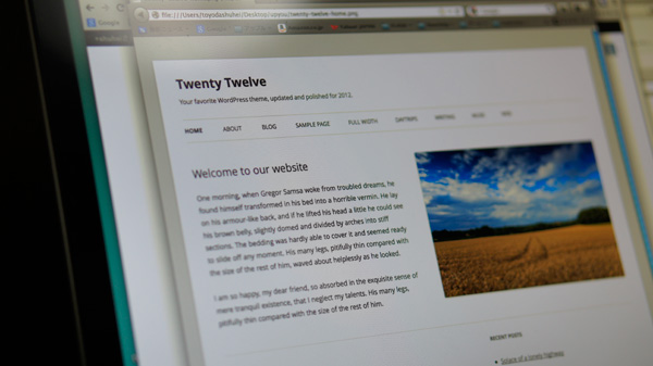ひとつ前のブログ(2011-2012)は記事が画面全体にばらっと散るようなデザインのものを採用したが、複数カラムになっているために、記事を一気に読むときに、ひとつの画面の中で上下に行ったり来たりしなければならないのが嫌だったので、今回のブログはシングルカラムにした。特に凝ったことももうしたくなかったので、ブログエンジンWordPressのデフォルトテーマ「Twenty Twelve」をベースに、余計なものをコリコリと削ったデザインにした。
