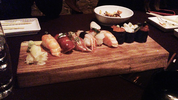メニューの写真の撮り方、プレゼンテーションの仕方にやはり日本人にない感覚を感じる。美的な感性とは別に、単純に文化的なものだが、まず日本人である自分は絶対に箸をこのようにバラバラっと無造作にレイアウトする感覚は持ち得ない…。箸は必ず2つが対となっていなければならないという先入観があったので、これは新鮮な感じがした。整然と並べられた寿司に対して、画面の中で、「抜き」というか、あえて均衡を崩すことでバランスを取るために、このランダムに置かれた箸は必要な構成要素だと思うが、自分だったら箸をそのように並べる発想はできなかっただろう。