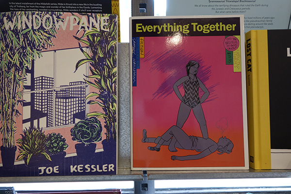 NOBROW booksという面白いイラスト集・コミックなどを出版している本屋に寄る。右のEverything Togetherという本の表紙は、横尾忠則のポスターのパロディのような気がする。左のWindow Paneという本を買ったところ、店番をしていた男がたまたまこの本の著者でサインを入れてくれた。気の利いたことを言えずに店を後にした。