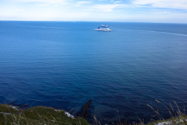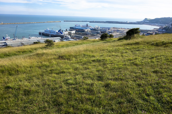 夕方にはBrightonから更に車で1時間半以上かけて、イギリス東部のDoverに行った。イギリスとフランスを分かつドーバー海峡で有名な街…。White cliffs(白い崖)を観に行った。鮮やかに切り取られた断崖から白く石灰岩が露出しており、夕日で灼けた草の緑とあいまって、美しかった。砂漠などの写真を見るときも時々思うが、この手の景色をみるとき、一瞬だが、おいしそう、という感覚がよぎる。かつて、カルボーンという骨型をした良い歯触りの白いスナック菓子があった。時間のせいか、自分がこちらに来てからまだあまり日が経っていないせいか、全体的に非現実的な感じがして、風景がよりきれいな感じに見えた。