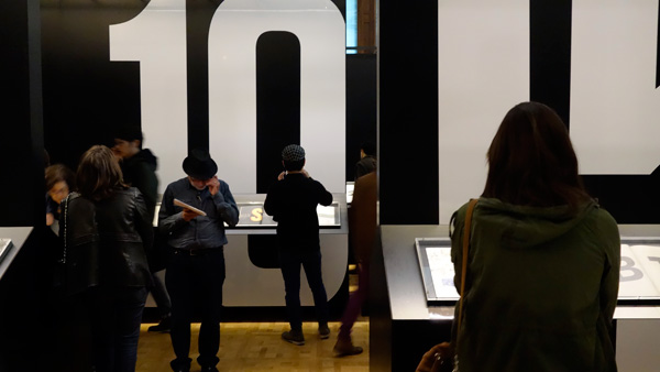 実作は別室で実物も展示されていた。かなり実直に、先人達の研究・構成感覚を身につけて、進化させているという感じで、文字以外の構成要素はあまり用いずにストイックなレイアウトをしており、美しかった。ヘルムート・シュミット(というスイス系タイポグラファ)が言っていた、見ることと読むことの両面からの追求を丁寧にやっている感じがした。