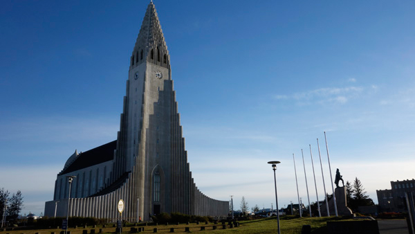 いったんホテルにチェックインしたのち、少し時間があったのでレイキャビク中心部を散策した。Hallgrímskirkja(ハットルグリムス教会)はレイキャビクのランドマーク的存在で、やや小高い丘の上に建っている宇宙的な造形の教会…。ある意味、ダイレクトな造形で、原始的というか幼稚ともとれるあたりが、逆に異文化圏に来たのだという怖さを感じさせた。とりあえず、両手を頭の上に伸ばし三角形を作り、教会とシンクロしたポーズをとって記念撮影してもらった。