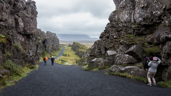 最初にÞingvellir National Parkという国立公園を訪れた。素のままの大地が露出している感じで、とにかく今までに感じたことの無いような広さを感じた。この国は、どこに行ってもだいたい地平線か水平線が見えている気がする。残念ながら雨が降っており、やや凍えながら公園内をしばし散策した。_DSC9057 _DSC9061