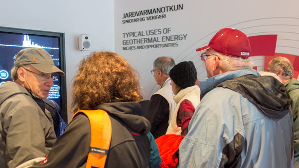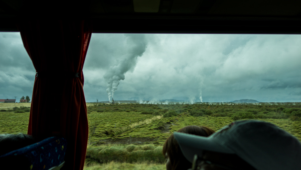 各拠点の移動はバスで行った。遠くで地表から煙が噴出しているのを見た。アイスランドは火山国なので、そこかしこから温泉が湧いていて、地熱発電もさかんなようだ。