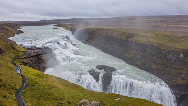 その後、黄金の滝と言う名前を持つGullfossという滝に向かった。ここも素晴らしいところで、人生においてこれほど、巨大な滝は見たことが無かったので、思わずおおーと声が何度も出た。人のサイズとの対比が凄い。
