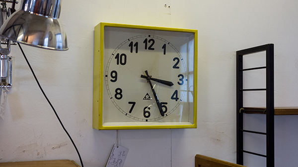 チェコ製のPragotronというメーカーの1940年代の時計。やけにボリュームのあるフレームと、数字の字形がいい気がした。あらためて写真で見ると針の形状も悪くない…。