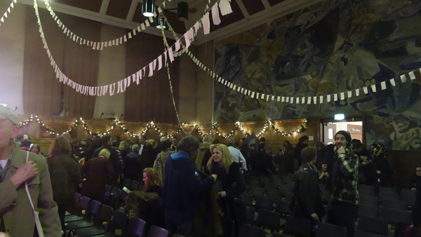 開場がダンスホールというか体育館のような雰囲気の大空間で、チープなクリスマスの飾り付けなどが施されており、非常によい雰囲気だった。Linda Perhacs氏はアシッド・フォークの伝説的な女性ミュージシャンのひとりで、今から40年以上まえ、1970年にたった1枚だけ「Parallelograms(平行四辺形)」という割とよい名前をもつ非常に良いアルバムを出したのみで、その後は音楽を辞め歯医者として暮らしていた人物。何故か来年、突如として44年ぶりのアルバムを出すらしく、今回のライブもその一環で企画されたようだ。本人はピンク色のセーターを着て登場し、サポートメンバーとともに、新曲含むセットリストで1時間ほどのライブを行った。やはり声の感じなどに陰りが感じられたものの、面白かった。サポートメンバーそれぞれのソロ曲の演奏もあったが、あまりLinda Perhacs氏との関連が感じられない音楽性で、この人たちがどのように集まって、44年ぶりのアルバム発表という現在に至っているのか不思議ではあり、わずかながら、邪推を誘う後味がのこった。。