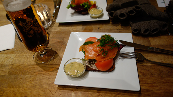同行していた別な同僚に薦められ、パンの上にサーモンと何かの葉を少々乗せたものも食べた。ディルと呼ばれる、細長い葉を持ったハーブの一種を使ったマヨネーズソースみたいなものが異様なおいしさだった。サーモンそれ自体がおいしかったのかもしれないが、同僚がしきりにディルが最高、ディルがすばらしいみたいなことをいうので、それに引っ張られた。