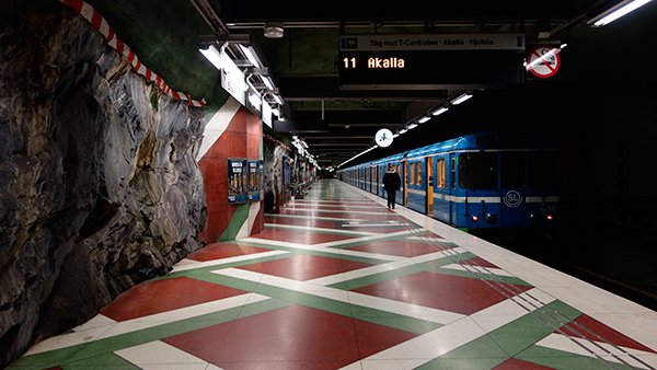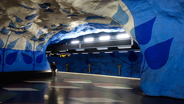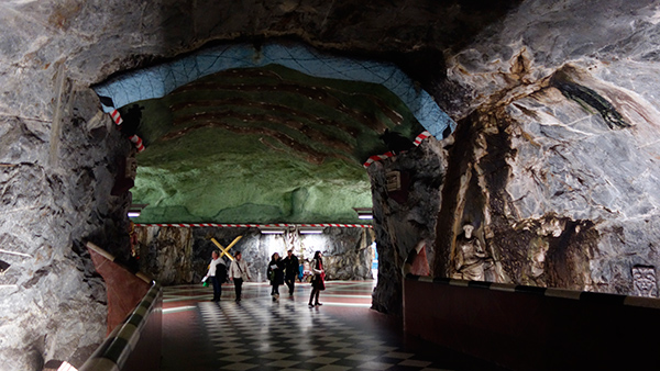 ストックホルムの地下鉄駅は、それぞれの駅ごとに違ったペイント、装飾を施されており、岩盤をくり抜いたような構内のラフな作りとも相まって非常に原始的な迫力があった。