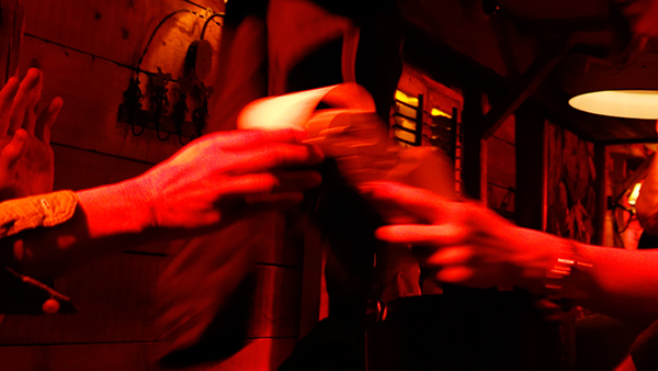 別室ではRoman Signerという作家の「Slow Movement」という展示が行われていた。大きくカーブした100メートルほどの部屋を、無人の赤いカヤックがロープで引きずられながらゆっくりと行ったり来たりするというだけの展示で、虚ろなのに緊張感があり、良かった。人の歩く速度よりわずかに遅い程度の速度で、床をこすりながら移動するカヤックに吸い寄せられ、何人もの人が幽霊のように後を付いていった。