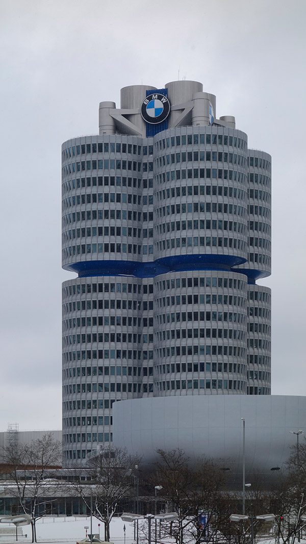 このタワーはKarl Schwarzerという人の設計らしいが、このトウモロコシ的な佇まいはとても良いと感じた。BMWのロゴがよく似合っており、世界を征服したかのような誇大妄想的な表情が味わい深い気がする。