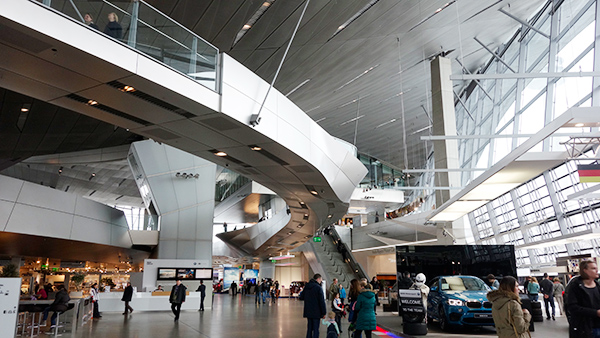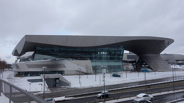 オリンピック公園のすぐ横にはBMWのヘッドクォーターがあり、コープ・ヒンメルブラウによる激しい造形のショールームがある。基本的にデコンストラクションの建築物は好きなので、現地に行く前までは、フライ・オットーよりこちらのほうが興味があったのだが、実際に見てみると、確かに造形は異常なものがあるのだが、あまり空間体験として面白みを感じなかった。しかし建物の端っこにある、時空が突然ゆがんだように捻れている部分は、意味ないのだが、設計者のやってやった感が前面に出ており、素晴らしいとも思う。